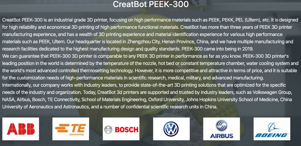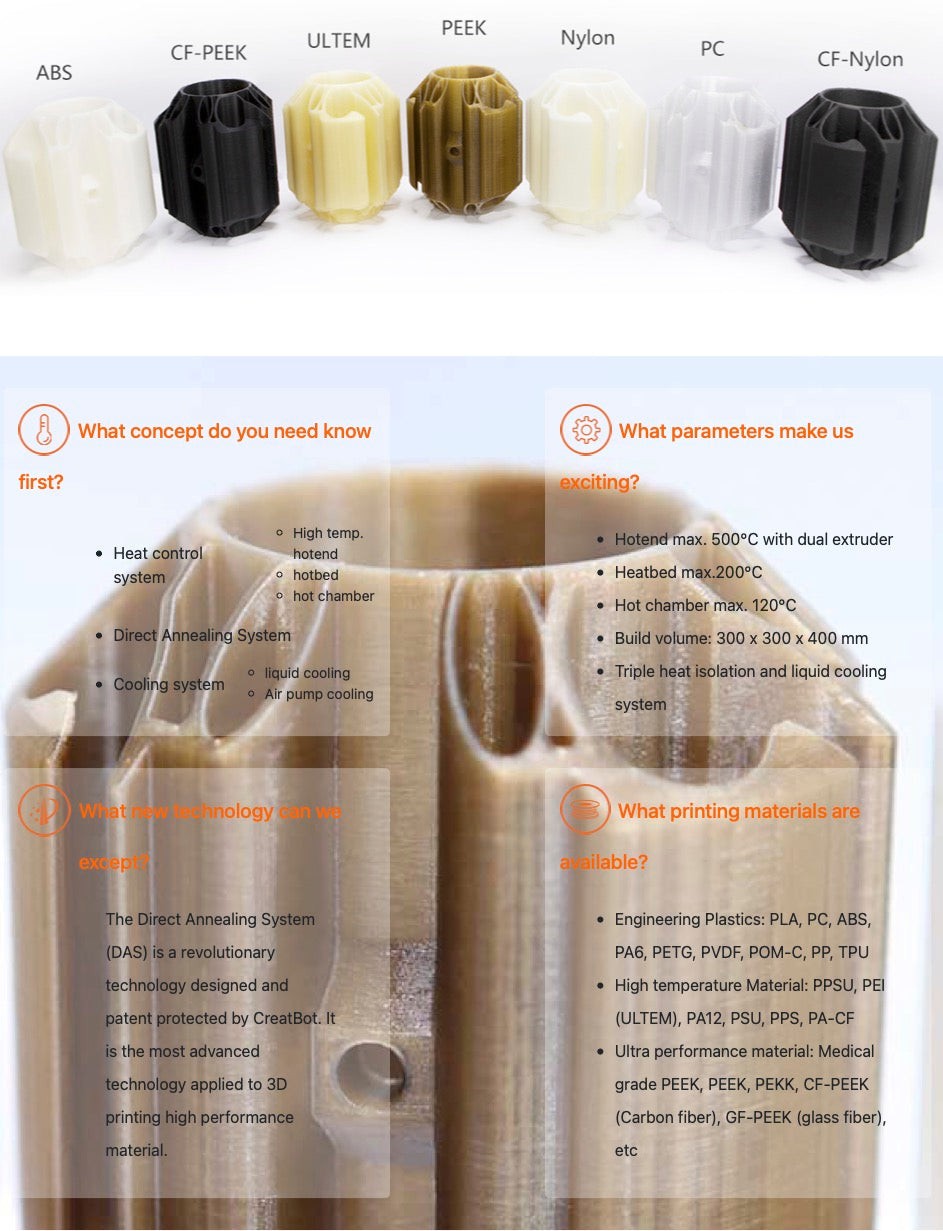 CREATBOT PEEK-300 SECOND GENERATION LATEST VERSION ULTRA HIGH-TEMPERATURE PEEK ULTEM 3D PRINTER
